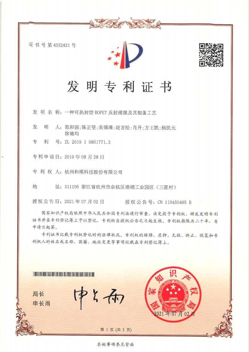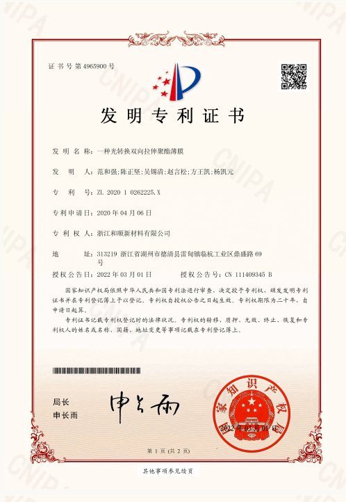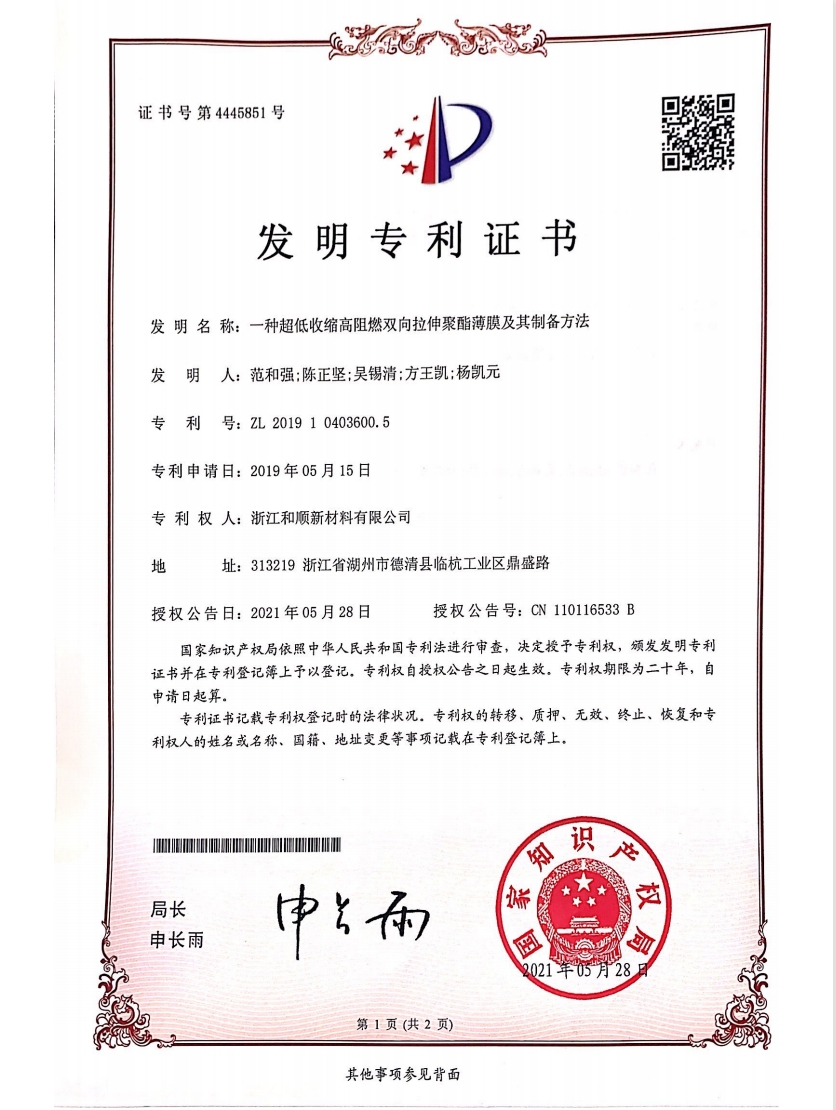 In addition to independent research and development, the company also actively carries out technical cooperation projects with Sichuan University, Zhejiang University of Technology and other universities, absorbs the latest research results, and continuously improves the company's new product research and development capabilities. Heshun New Materials Co., Ltd., as a specialized, specialized, and new enterprise in Zhejiang Province, is the leader of differentiated functional products in the national polyester film industry, and its core competitiveness lies in its continuous R&D and innovation capabilities. After years of accumulation, we have mastered a number of advanced processes and unique formulation technologies for the manufacture of polyester film materials. At the same time, we know that continuous innovation is the source of enterprise development, and continuous exploration and accumulation of strong scientific research capabilities can be better. create value for customers. To this end, we continue to expand scientific research investment, introduce various professional talents, configure relevant equipment, and have an excellent team of nearly 50 engineers